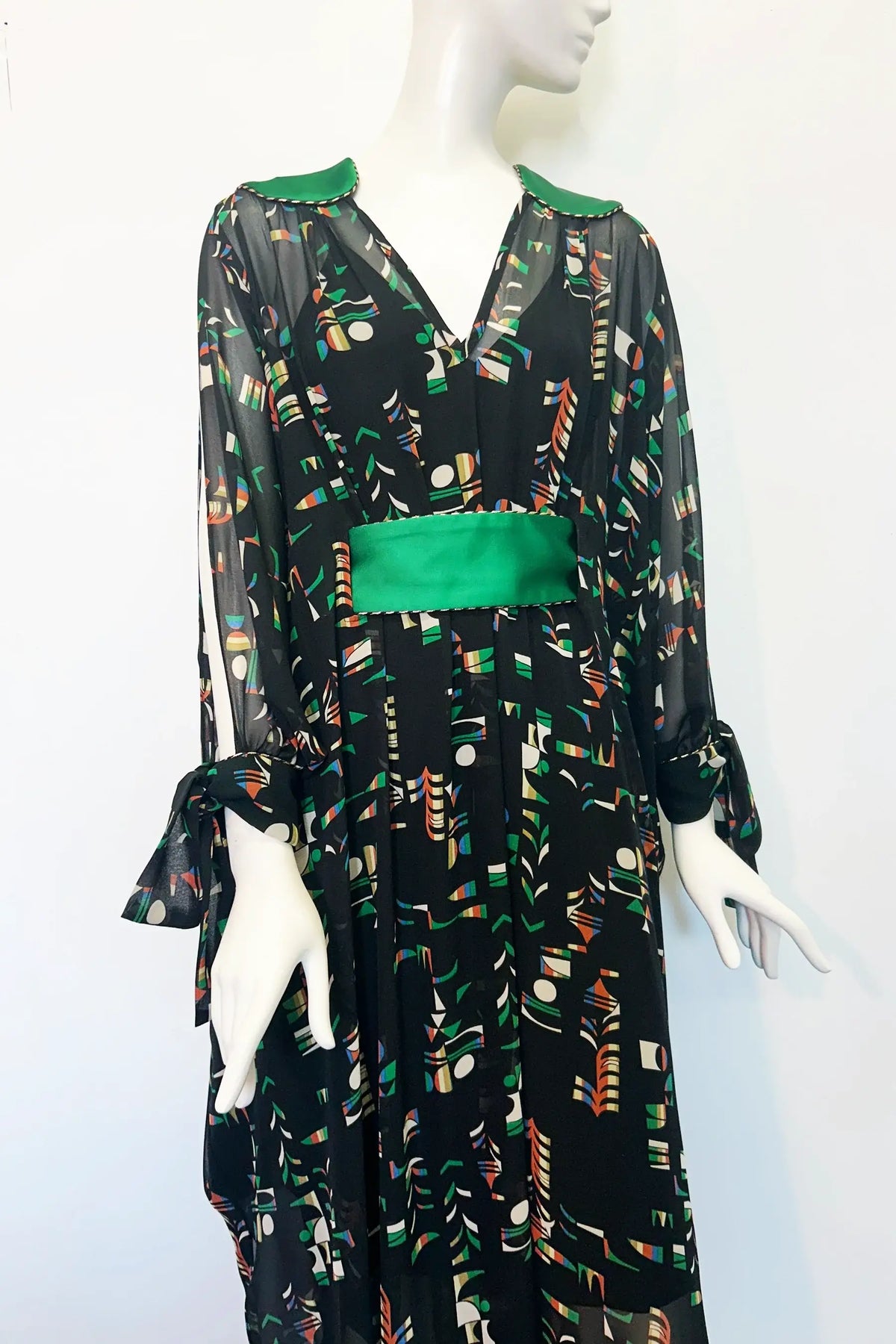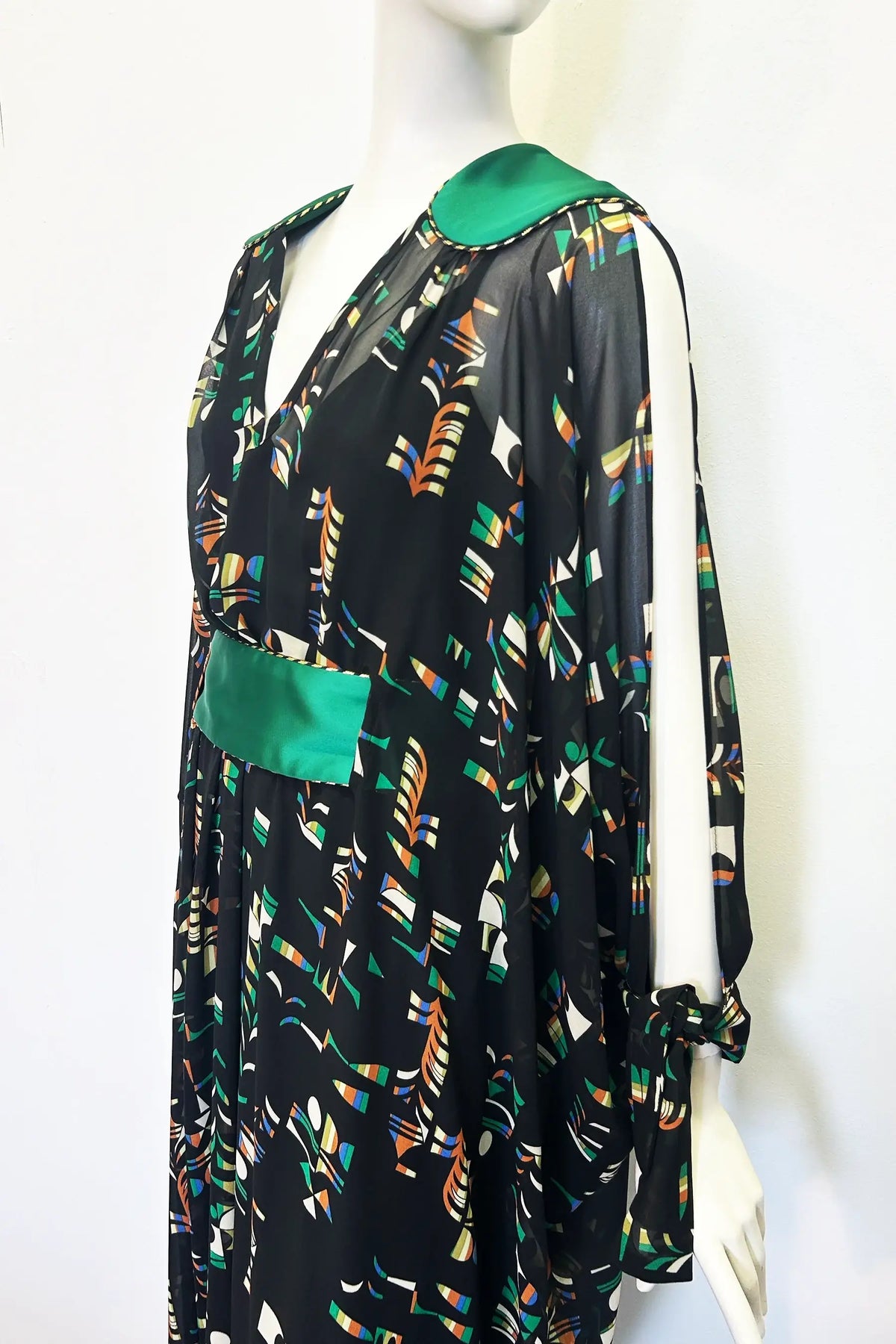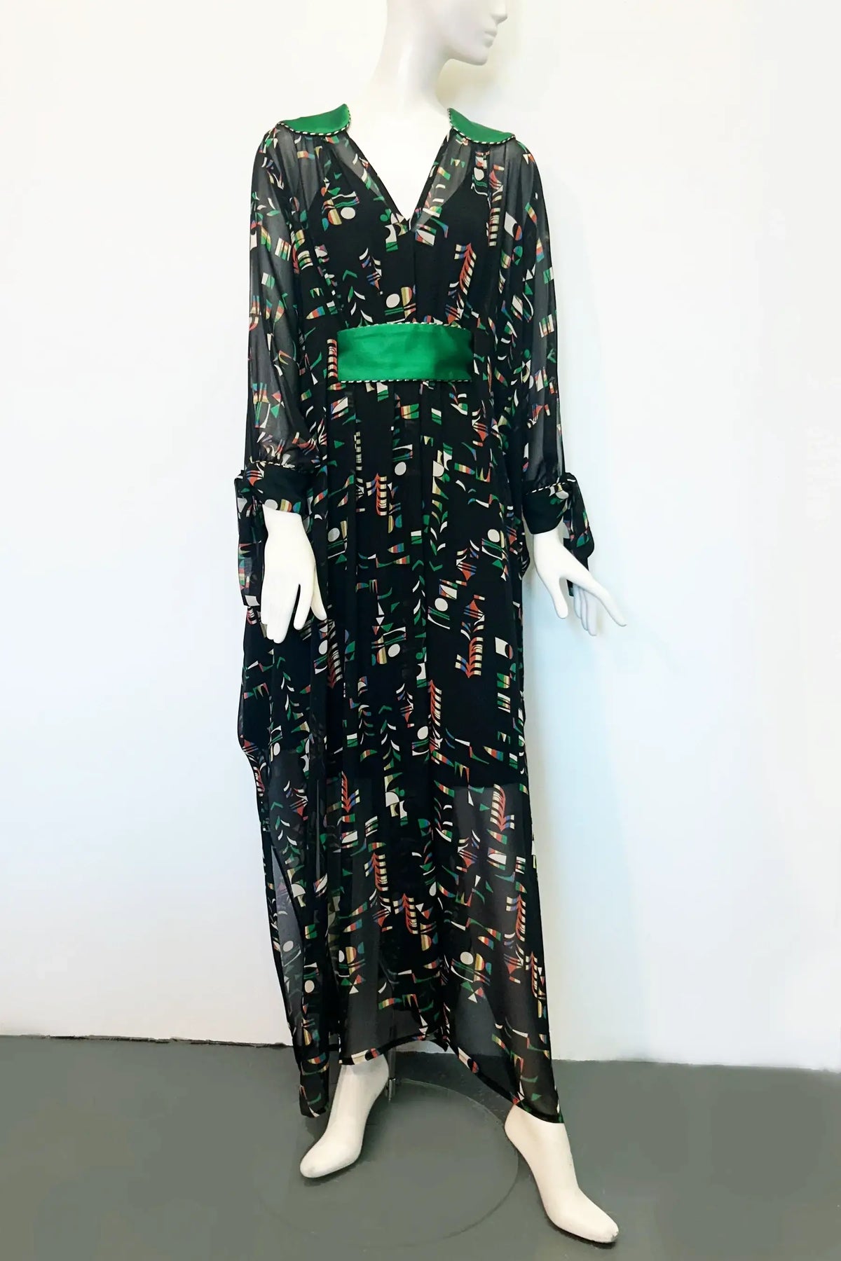 A maxi-length kaftan in sheer printed chiffon is a beautiful addition to your wardrobe. The open sleeves and tie cuff detail in co-ordinating print add a stylish touch.